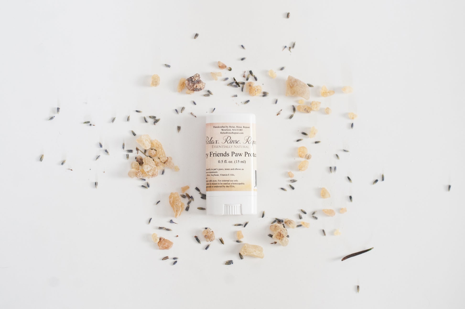 Snow, ice, salt, hot pavement, and other harsh surfaces don't stand a chance against this all-natural paw protectant! This product comes in a roll-up applicator to make it possible to apply on even the most stubborn friends. Suitable for both cats and dogs. This paw protectant pairs perfectly with our healing salve.